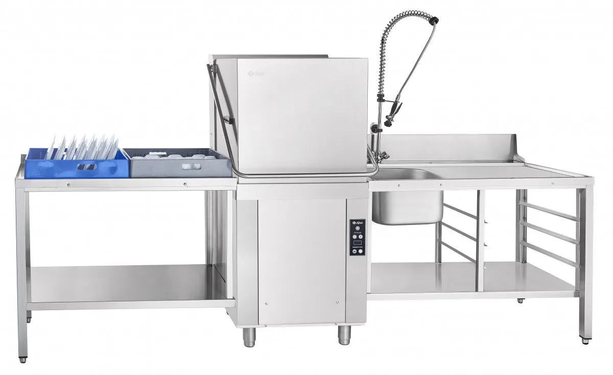 Корпус и все элементы, контактирующие с водой, выполнены из нержавеющей стали AISI 304, что увеличивает долговечность оборудования. Разборные разбрызгиватели и двойная система фильтрации облегчают обслуживание и чистку устройства. Дополнительные аксессуары, такие как кассеты для разных типов посуды, можно приобрести отдельно