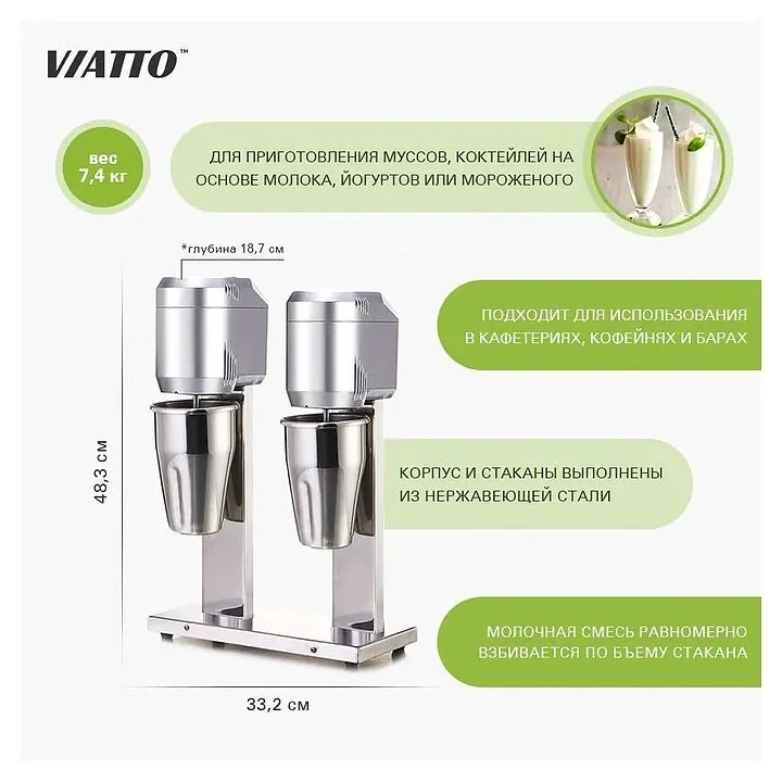 Миксер для молочных коктейлей Viatto VA-DM-B-20