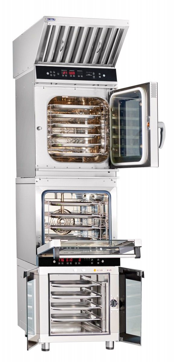 Модель использует бойлерный способ образования пара, что гарантирует стабильную подачу пара необходимой интенсивности. Температурный диапазон от 30 до 270 °C позволяет реализовать различные технологические процессы приготовления.