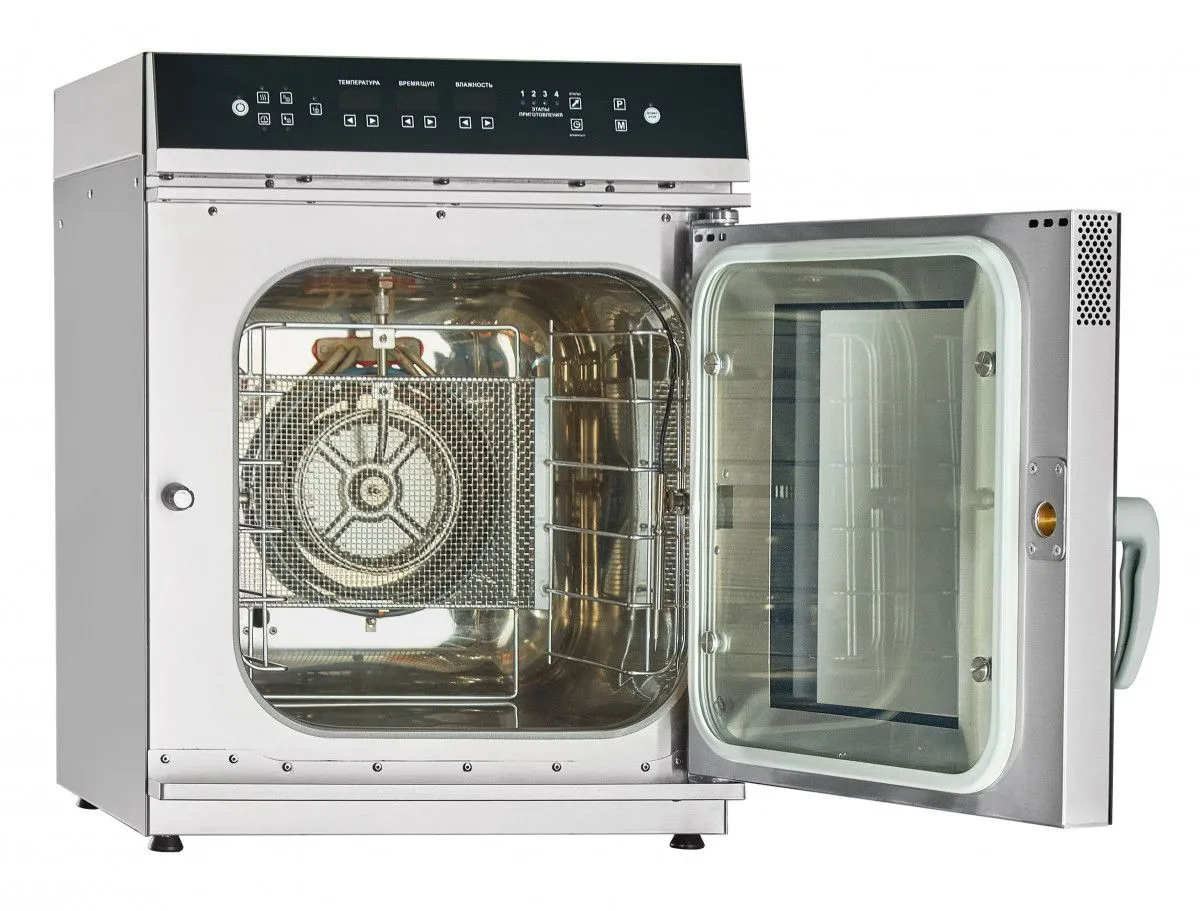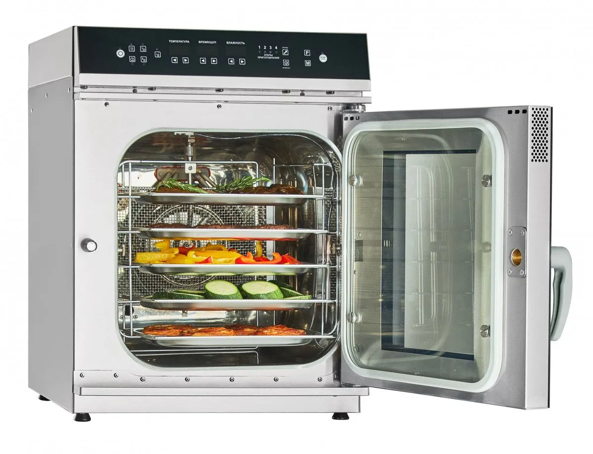 Оборудование имеет 6 уровней для гастроемкостей GN 1/2 и электронную панель управления для программирования режимов. Инжекторная подача пара сокращает время приготовления и улучшает качество блюд.