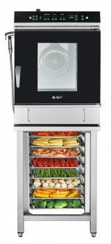 Модель оснащена системой автоматической мойки, что значительно упрощает процесс обслуживания и экономит время персонала. Электронная панель управления обеспечивает точный контроль всех параметров приготовления, а расстояние между уровнями 65 мм позволяет размещать продукты различной высоты.