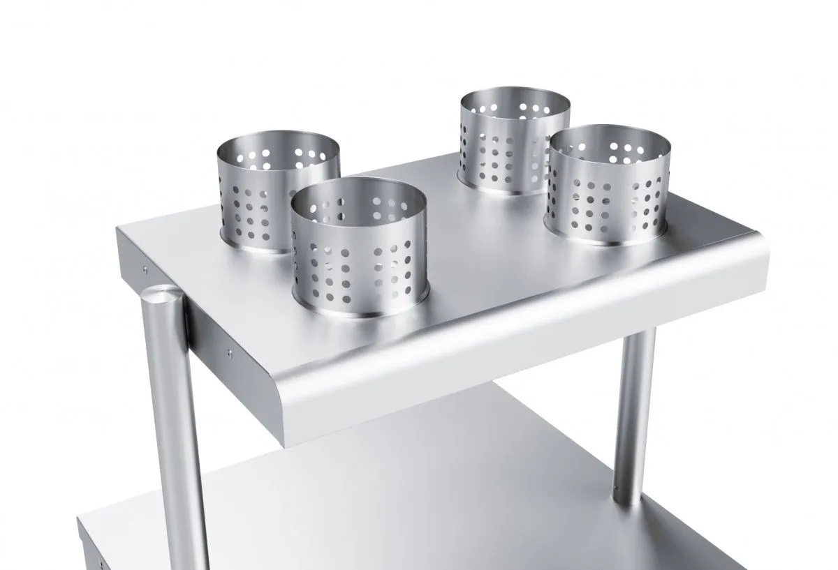 Прилавок Abat ПСП-70Х используется в составе линии раздачи HOT-LINE на предприятиях общественного питания и торговли для раздачи потребителям столовых приборов и подносов. Модель оснащена 4 стаканами из нержавеющей стали, предназначенными для хранения столовых приборов. Корпус и панели выполнены из нержавеющей стали.