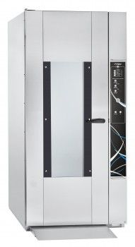 Оборудование оснащено электронной системой управления, встроенными датчиками температуры и влажности для точного поддержания параметров в рабочей камере. Диапазон температуры — от +25 до +85°C, влажность может регулироваться в широких пределах (до 98%) с шагом 1%. Мощность шкафа 4,9 кВт, подключение к электросети — 220 В. Встроенная система пароувлажнения работает как автоматический долив: вода поступает на ванну с отдельного водопровода, лишняя влага удаляется через специальный слив. Предусмотрено три режима эксплуатации: расстойка, нагрев и разморозка, а также программирование — до 110 программ с индивидуальными настройками.