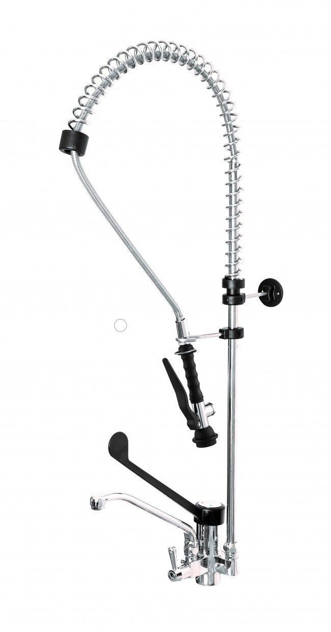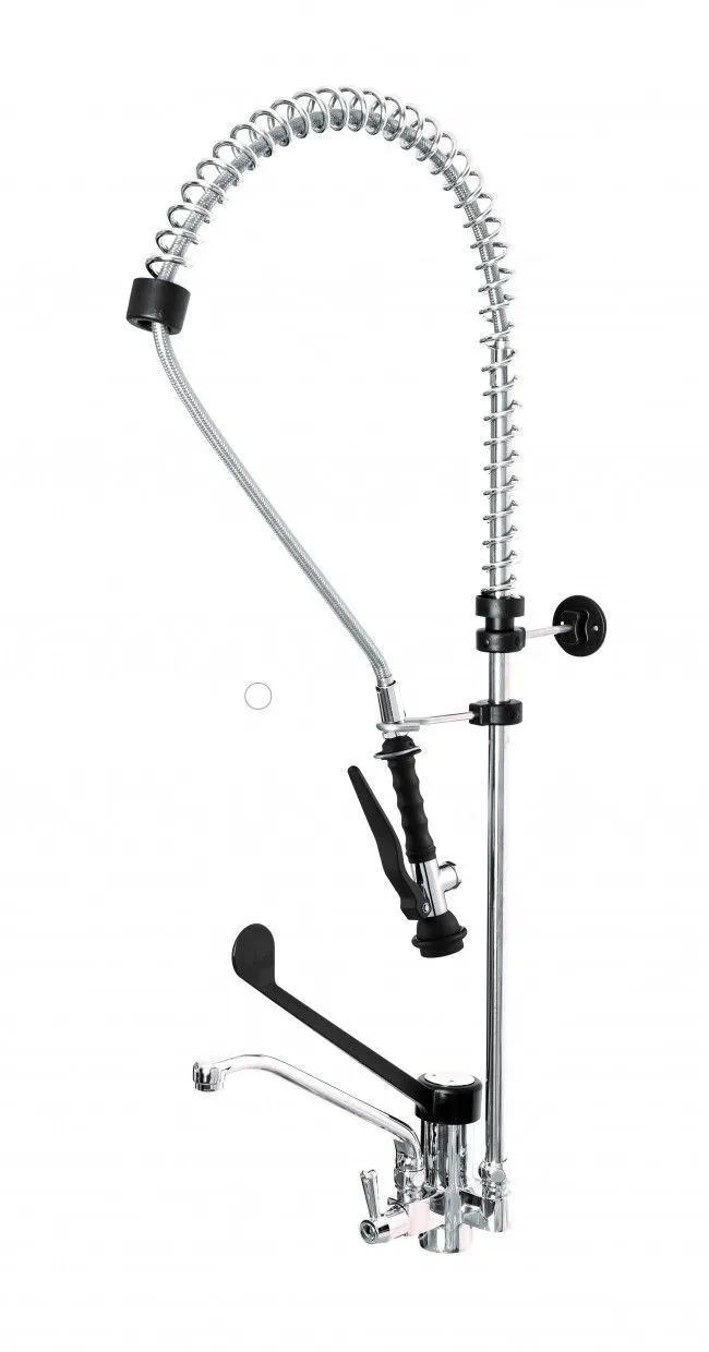 Душирующее устройство Monolith R0201020249 предназначено для удобного удаления крупных остатков пищи с кухонной посуды и инвентаря перед загрузкой в посудомоечную машину в моечных цехах на предприятиях общественного питания.Модель с креплением к раковине оснащена рычажным краном с локтевым управлением, смесителем и компактным изливом, расположенным на уровне ручки. Душ с наконечником черного цвета выполнен из нержавеющей стали с термопластиком, держатель душа - из пластика.