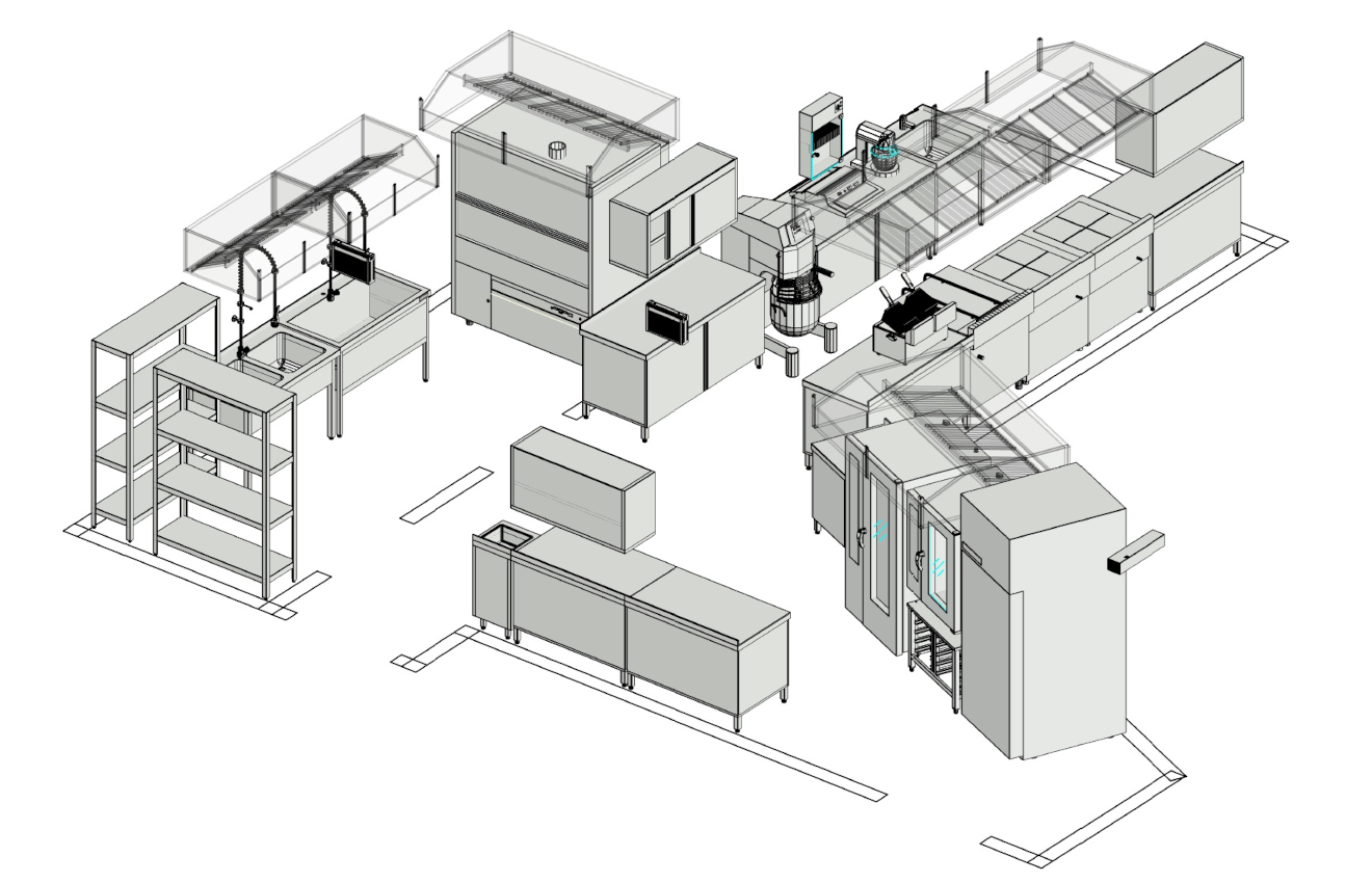 Специфика фабрики-кухни зачастую предполагает большую и разнообразную матрицу готовой продукции, что, в свою очередь, требует особого подхода к выбору технологического оснащения. Ключевым становится оборудование, способное обеспечить гибкость производственных линий для одновременного выпуска разнообразных блюд — от монопродукта до сложных кулинарных композиций. Современное автоматизированное оборудование позволяет адаптировать технологические процессы под разные рецептуры без остановки производства. Такая универсальность сокращает затраты на перенастройку, минимизирует простои и позволяет сохранить стабильное качество даже при частой смене ассортимента выпускаемой продукции, а также уменьшить общее количество сотрудников, необходимое для реализации производственного процесса.