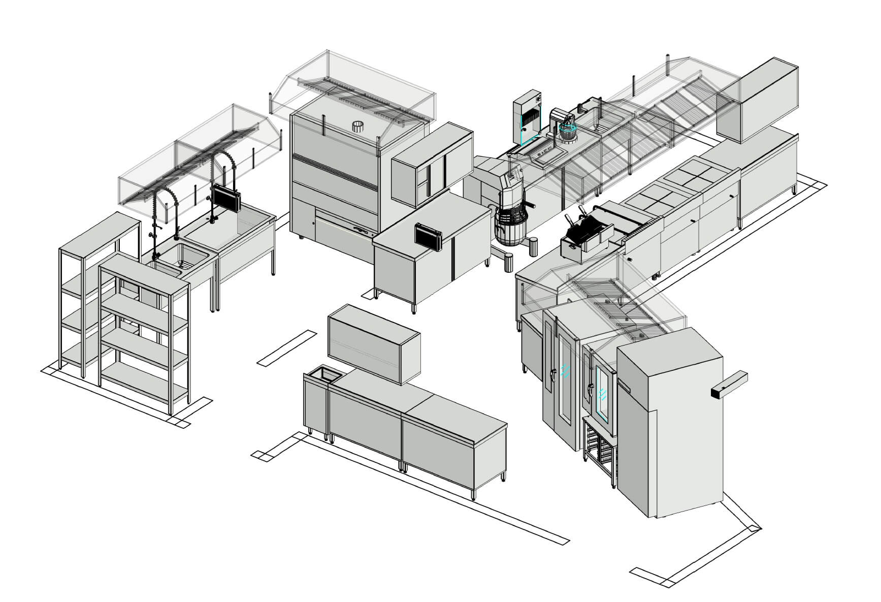 Наши проектировщики имеют практический опыт работы на кухнях и производствах общественного питания, что позволяет им создавать максимально комфортные условия для работы кухни, также при проектировании мы готовы к взаимодействию со смежными подразделениями и работниками кухни со стороны заказчика, что позволяет нам получать все пожелания из первых рук.